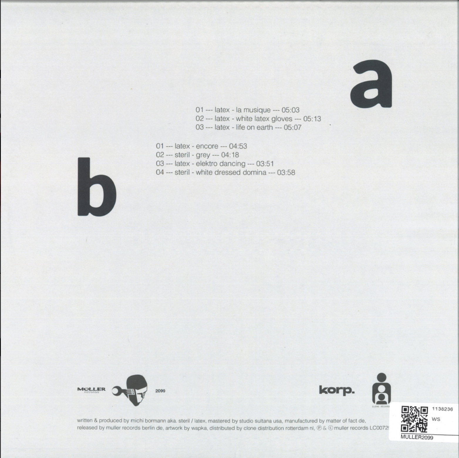 In demand Electroclash from the golden days in the rebound! The best tracks by Michi Bormann, all released under his alias Latex on Muller Records and some tracks released under the pseudonym Steril on Gigolo and Lasergun. All newly mastered and processed. Seven tracks will be released on vinyl and the edition is limited.